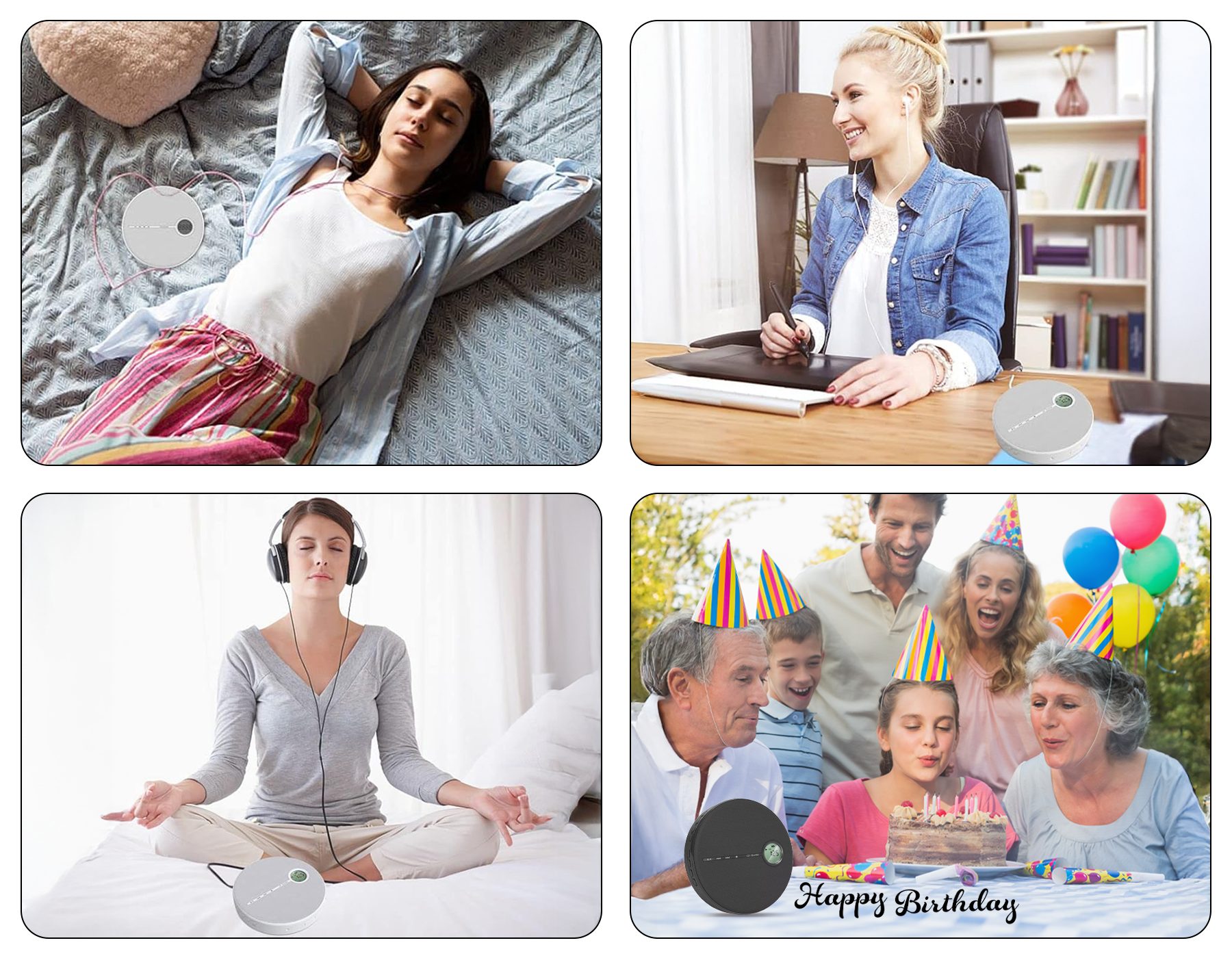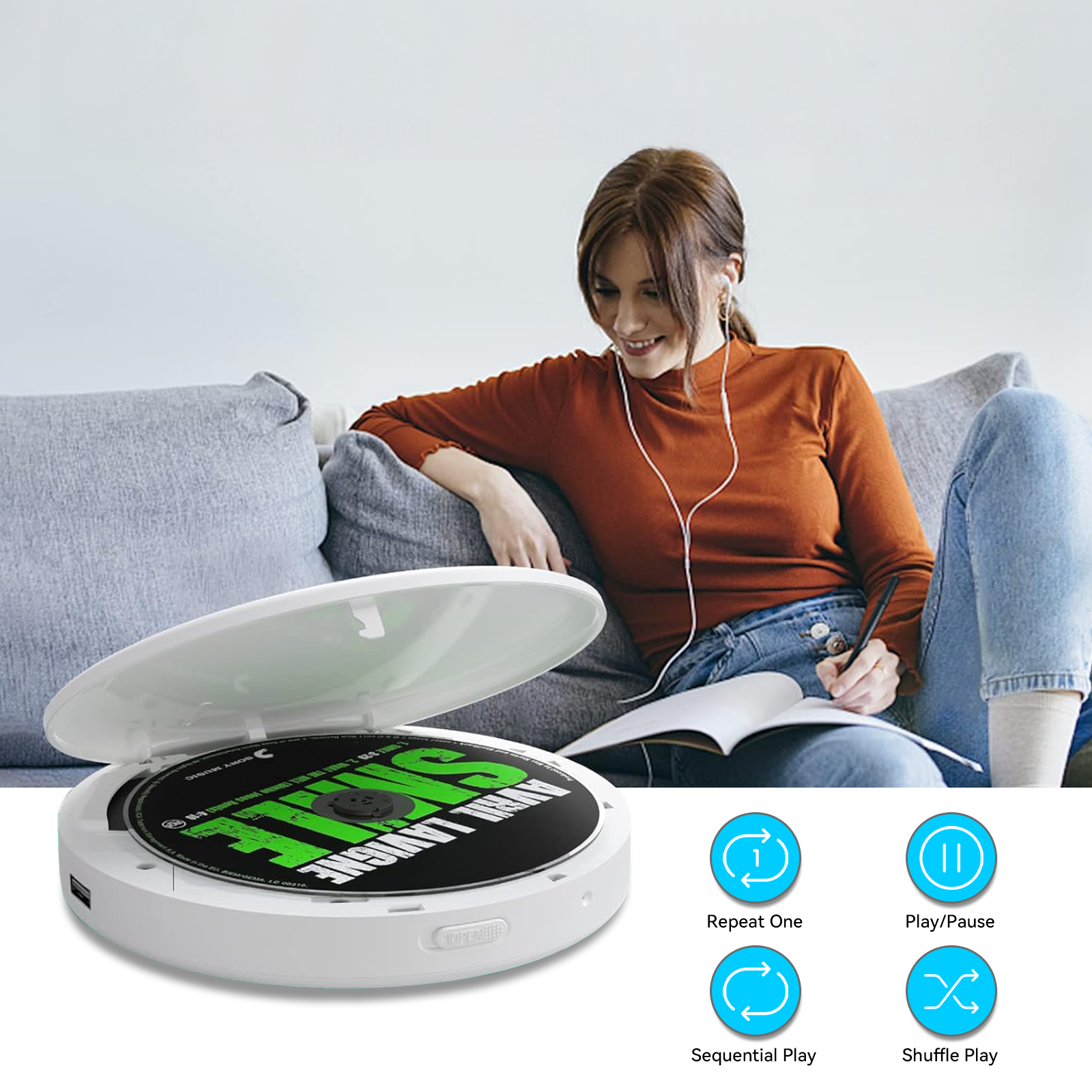 The Smileboxy CD player supports Bluetooth and USB playback, perfect for study sessions. Whether it’s for listening exercises, language learning, or focus-enhancing background music, its high-quality sound and anti-skip function provide a stable and clear audio environment, helping you improve focus and learning efficiency.